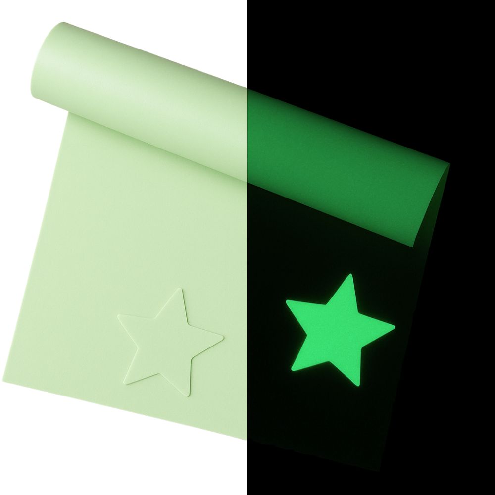 Diese pastellgrüne, festere Folie speichert das Tageslicht und leuchtet in der Nacht. Sie ist Ideal für zum Beispiel einen geplotteten Sternenhimmel im Kinderzimmer.