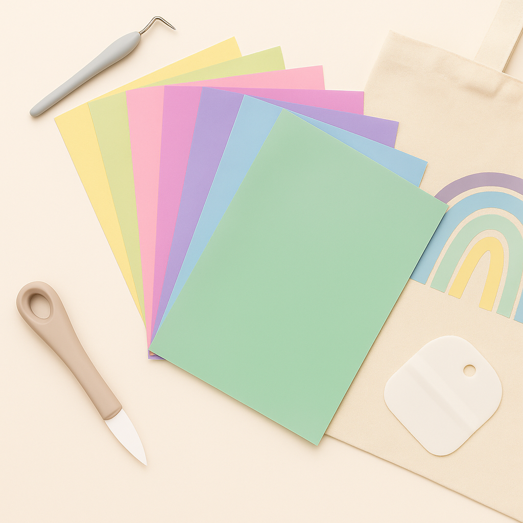 Das PastellDreams Folienset bringt eine fein abgestimmte Auswahl zarter Farben in deine Plotter Folien Sammlung. Von cremigen und rosigen Nuancen über sanftes Flieder und Pastellgelb bis hin zu frischem Blau – dieses Set ist ideal für elegante, verspielte oder romantische Projekte. Perfekt für Hochzeiten, Babydesigns oder frühlingshafte Deko.