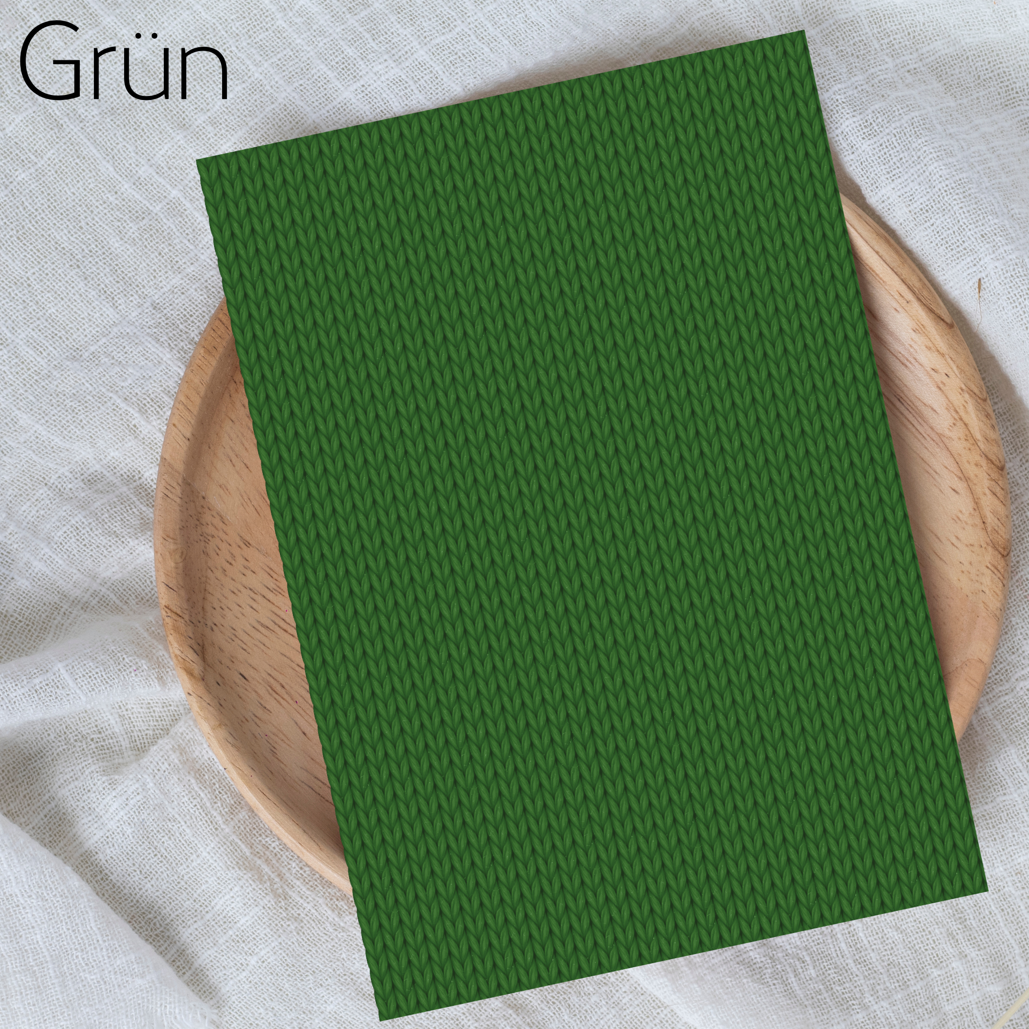 Kombiniere die Knit Flex – Flexfolie in Strickoptik mit unifarbenen Stoffen in Creme, Beige oder Dunkelgrün, um den Strickeffekt elegant hervorzuheben. Besonders auf Baumwolltaschen, Sweatshirts oder Kissen entsteht ein authentischer Handmade-Look mit kuscheligem Charme.