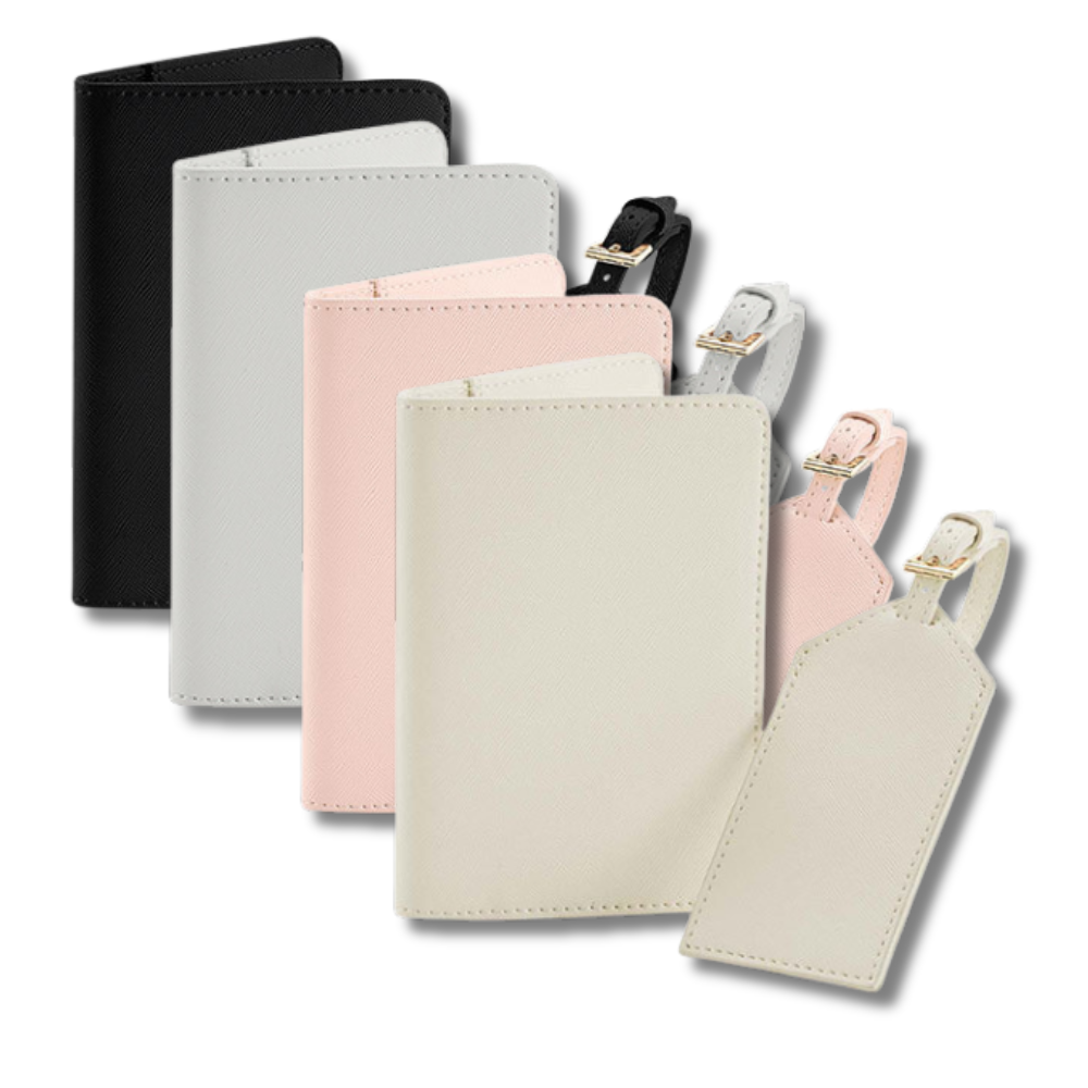 Edles, schickes und praktisches Reiseset in PU-Leder Optik bestend aus Ausweishülle und Kofferanhänger.